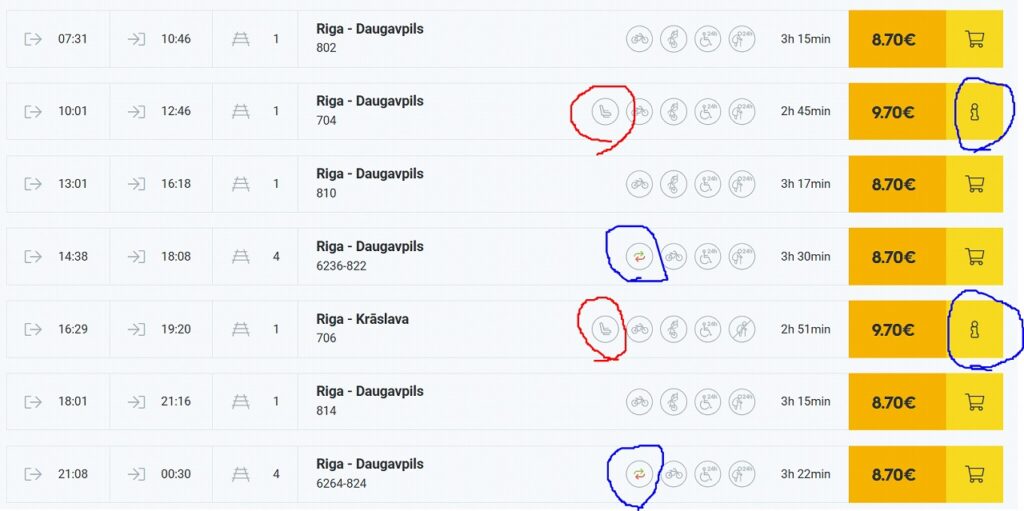 列車のダイヤの確認や予約はラトビア鉄道のサイト(Vivi)で行うことができる。