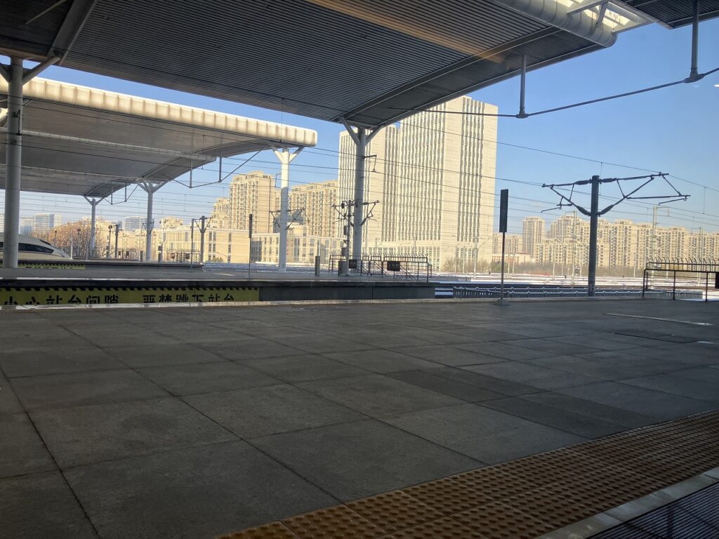 定刻8時、積雪をなだめるような頼りない朝陽を浴びながら北京南駅を出発した。
