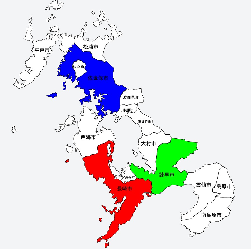また、一般に長崎県本土は県北・県南に分けられるが、それぞれの中心は佐世保市と長崎市なので風土面でも都合が良い。(④)