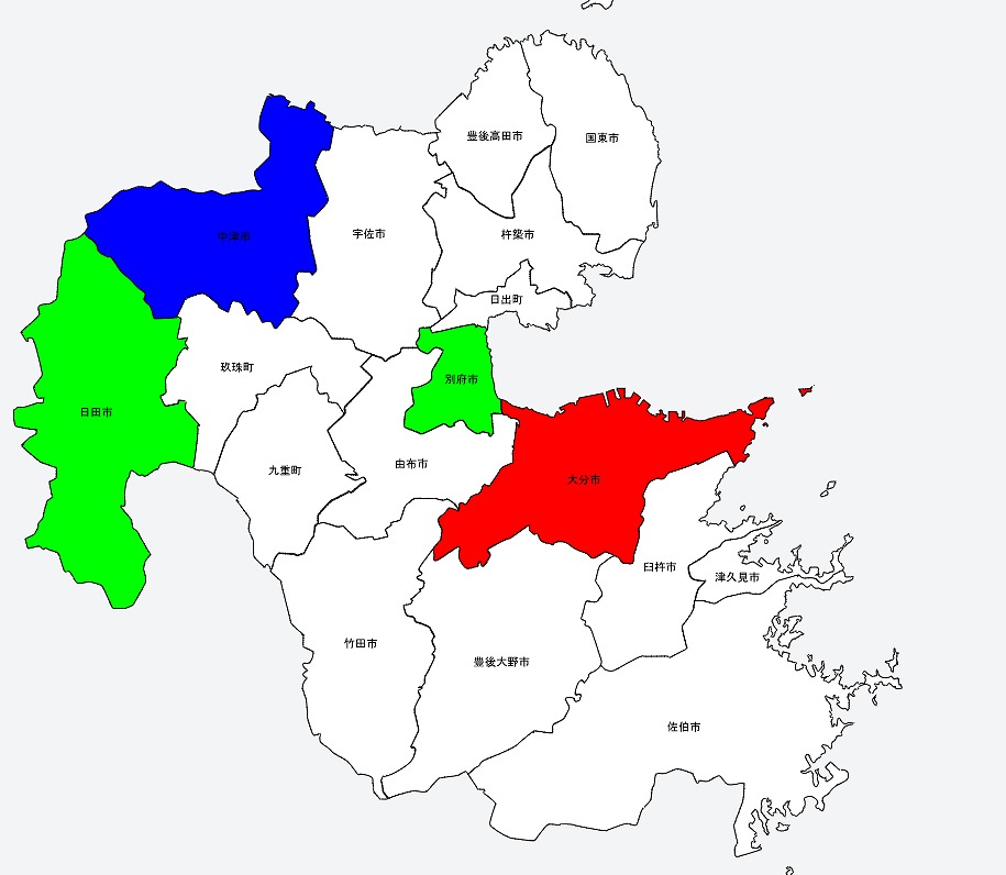 大分市が旧豊後国なのに対して、福岡との県境に位置する中津市は旧豊前国で、②経済地理的中心性と③歴史的独自性を満たしている。