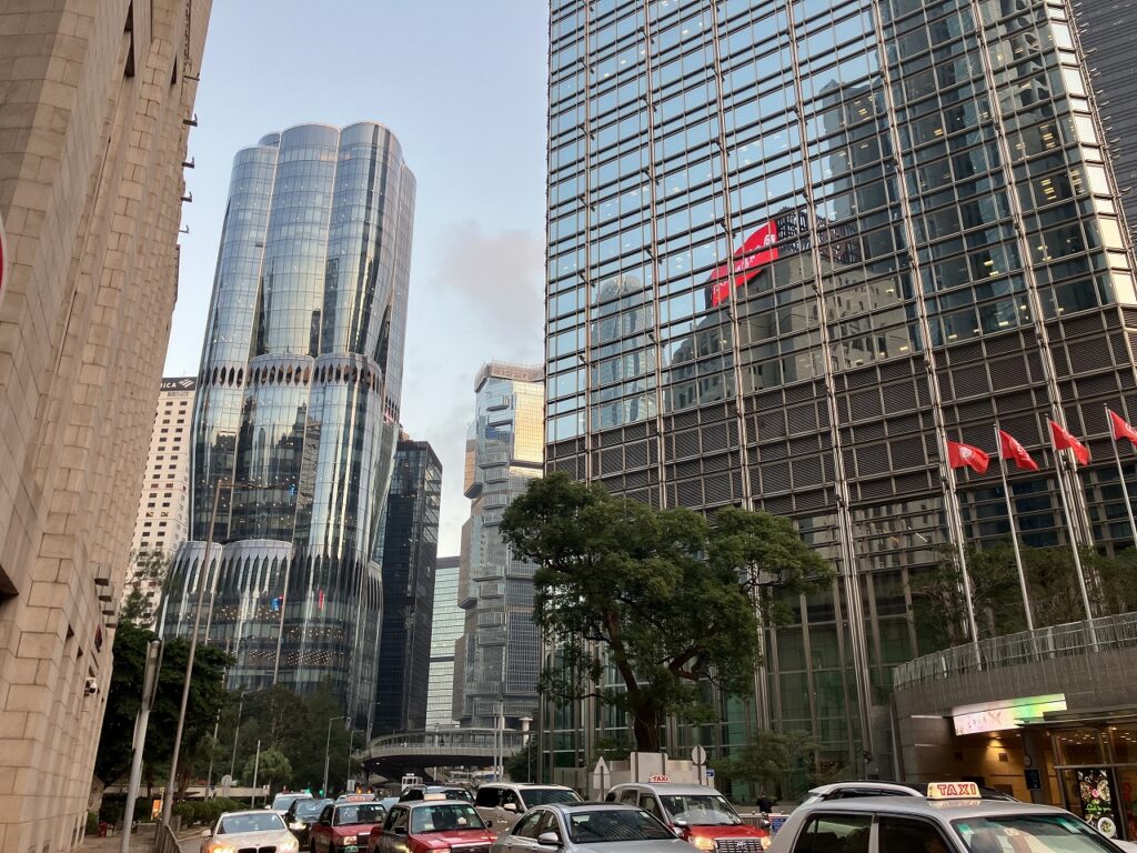 高層ビルのロゴを見るだけで、本土と比べて漢字だけでなくアルファベットが目立つ、つまり外資系企業の存在感が大きいことがよく分かる。