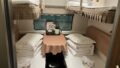 土讃線の普通列車の車内は変わったレイアウトになっていて、車両中央部を対象点としてロングシートとクロスシートが左右交互に配置されている。