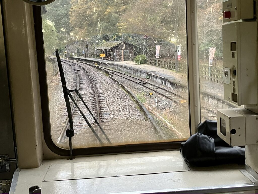 引き込み線からは紅葉と滝が見事な渓流がすぐ傍に見えた。