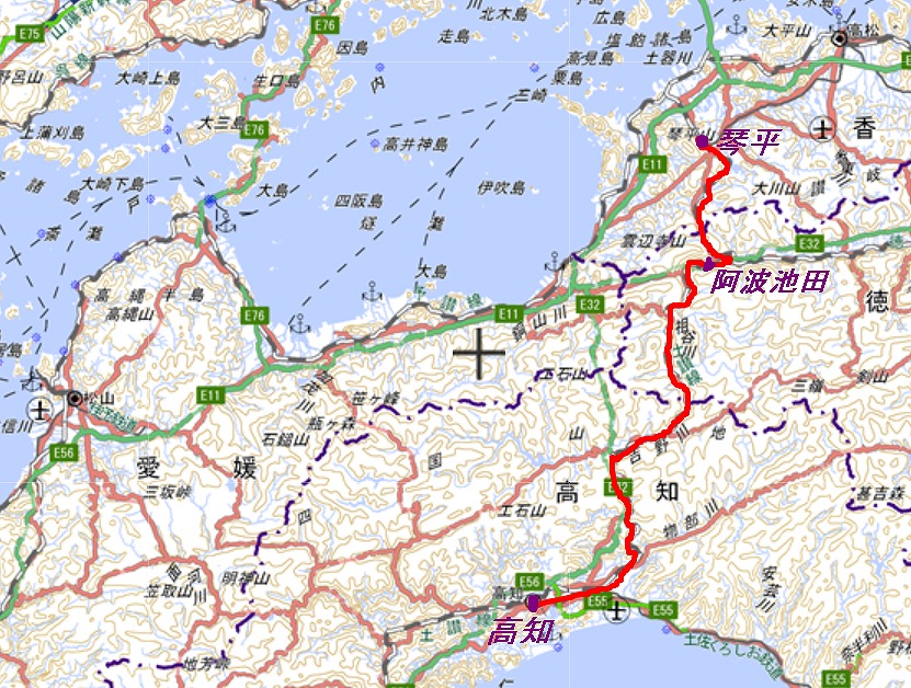乗車記に先立ち、琴平~高知の全体見取り図を示しておこう。