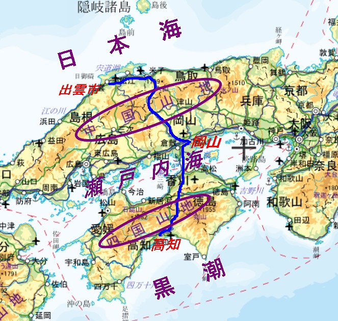 その点、高知~岡山~島根に至る南北400㎞のルートは、東京から長崎までの東西1,400㎞よりも遥かに日本の広さを見せつけてくれる。
