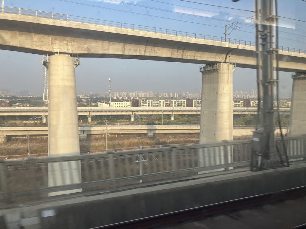 並走する高速列車を追い抜くというひとコマに出会えるのも、中国ならではである。