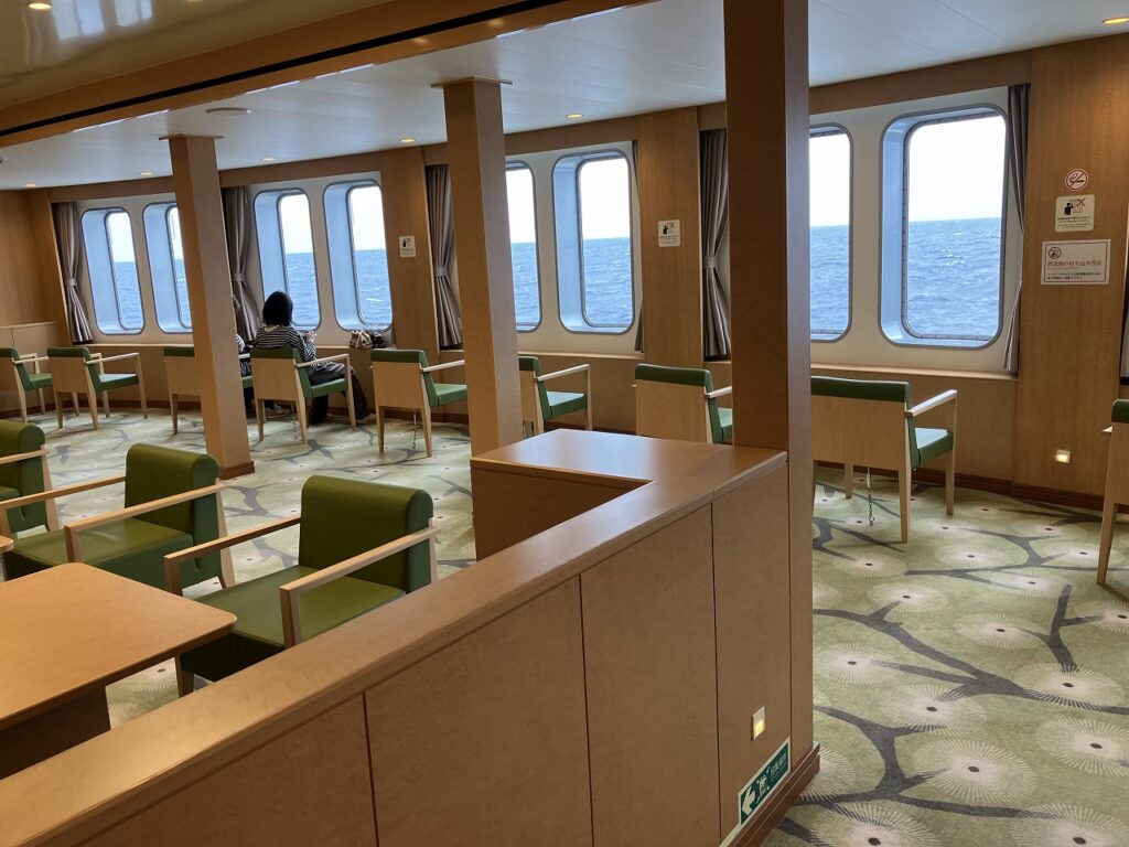 乗客の多くは車有りのため、2日目は酒を飲んで盛り上がるグループもなく、船内はとても静かだった。