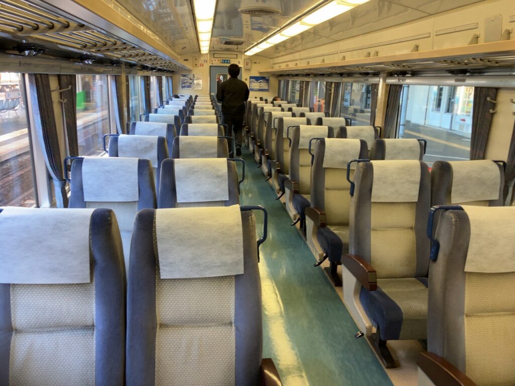 2両編成のうち、自由席の3号車の乗客は15人程度、一部指定席の1号車はもっと少なかった。(なぜか2号車はなかった)