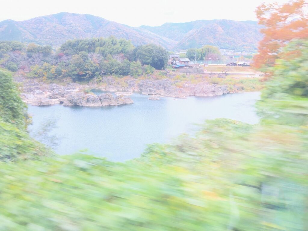 川のなかに数々の奇岩が顔を出している様子を、木々に阻まれながらも辛うじて列車から見ることができた。