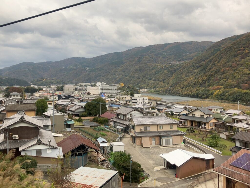 佃駅(通過)で土讃線と合流し、高台から三好市の市街へと降りていく。